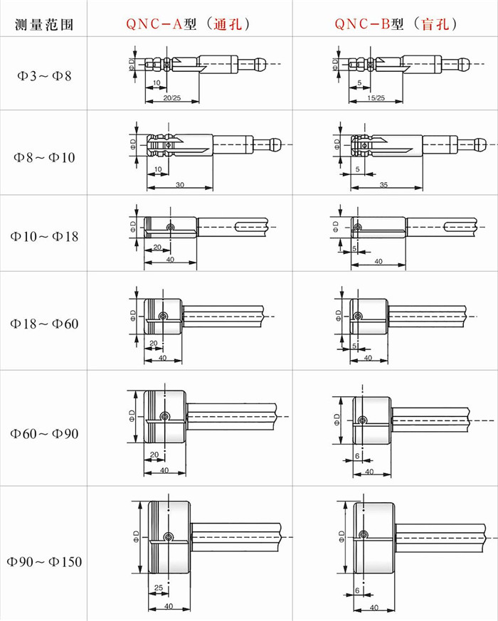 標準氣動測量頭尺寸