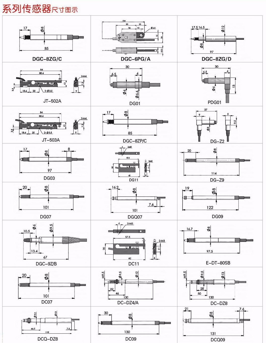 標(biāo)準(zhǔn)氣動測量頭尺寸